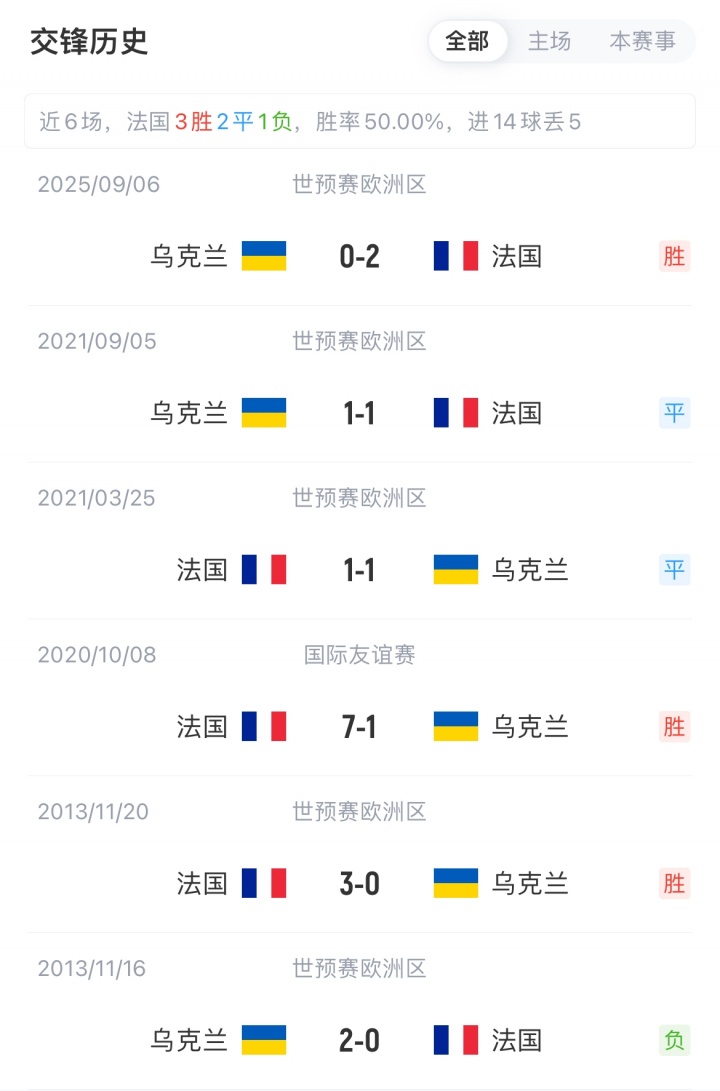 法国世预赛3胜1平积10分暂位D组第一;乌克兰2胜1平1负积7分暂位第二,英超直播在线高清(无插件)近3轮不败。本场若法国战胜乌克兰,就将提前一轮晋级下一轮 世界杯赛 。法国正式比赛对阵乌克兰已连续4场不败(2胜2平)。