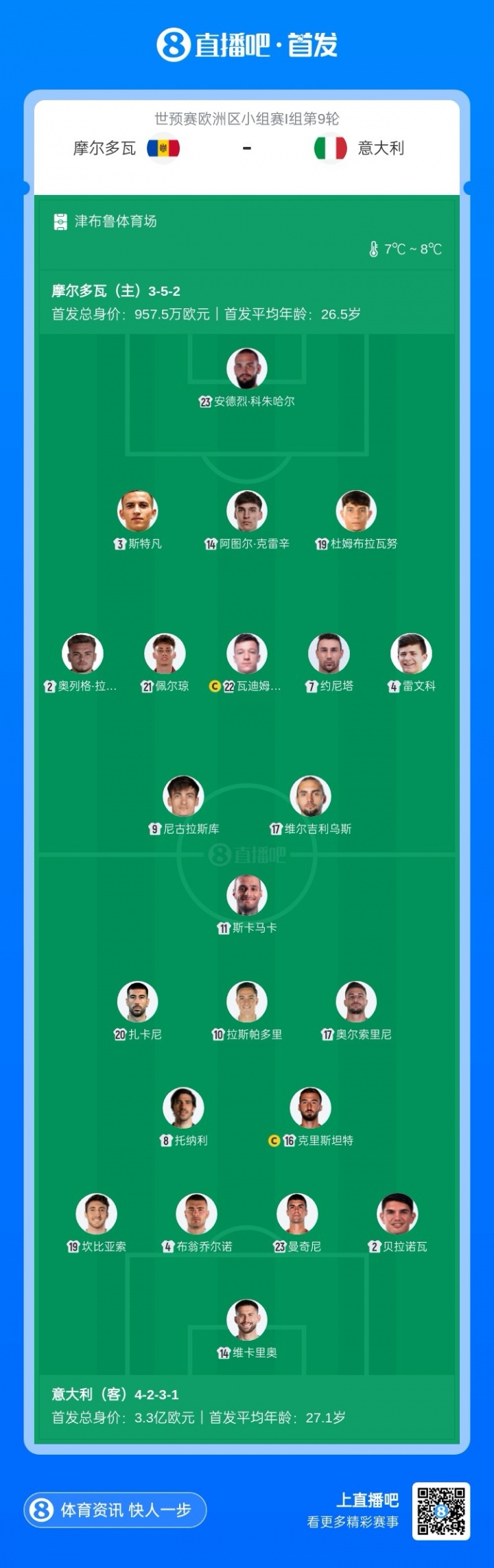 11月14日讯 世预赛欧洲区小组赛I组第9轮,摩尔多瓦主场作战 迎战意大利,英超直播赛前杆位名单公布。