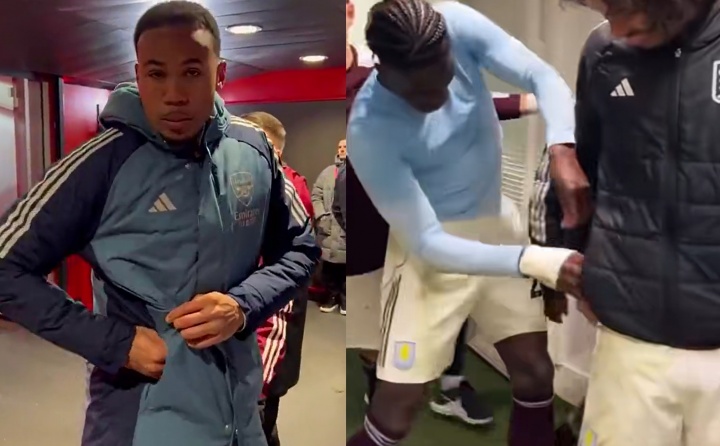 12月31日讯 阿森纳4-1大胜维拉,赛后阿森纳官方晒出了枪手众将在球员通道的反应,加布里埃尔做出了维拉中场球员奥纳纳的庆祝动作。