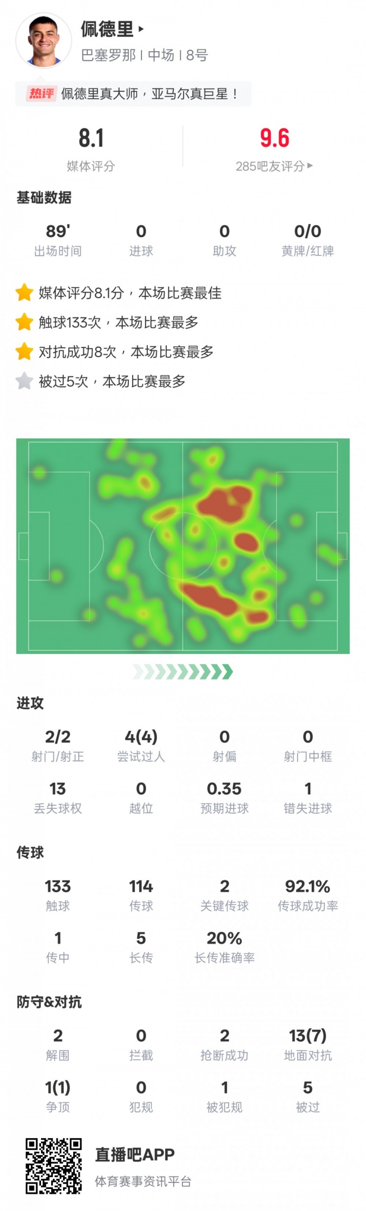 本场赛事 ,英超直播在线高清(无插件)佩德里送出2次关键传送球 ,4次过人均成功,传送球 成功率92.1%,133次触球也是全场最多,还有2次解围和2次抄截 。