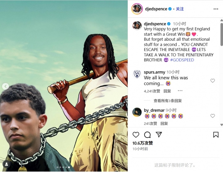 斯宾塞在社媒中连发多张赛场照,英超直播在线高清(无插件)其中还附带了一张自己与约翰逊的梗图。