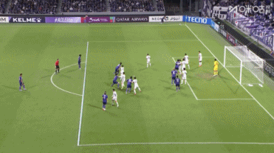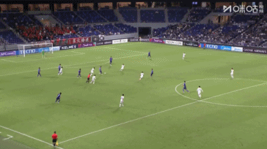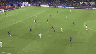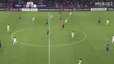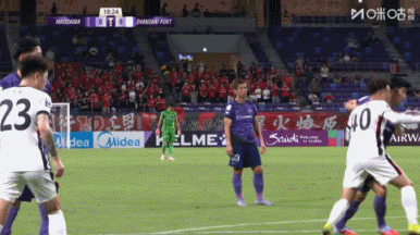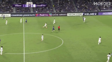 上半场补时第1分钟,广岛三箭右路传中,陈威倒地做出关键阻拦 。↓