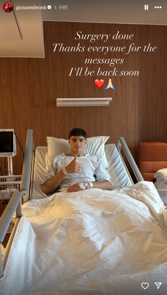 莱奥尼晒出在病床上的照片,英超直播在线高清(无插件)配文:“手术完成,感谢大家的祝福信息,我会很快回归。”