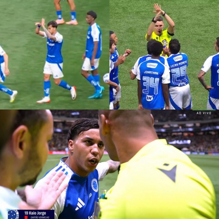 在一场克鲁塞罗对阵米内罗竞赛 的巴甲职业联赛 中,凯奥-若热在对方扳平比分后,向主裁判 做出了“戴手铐”的手势。主裁判 起初并未察觉,但经视频边裁 提醒后,直接向他出示驱逐 将其罚下。