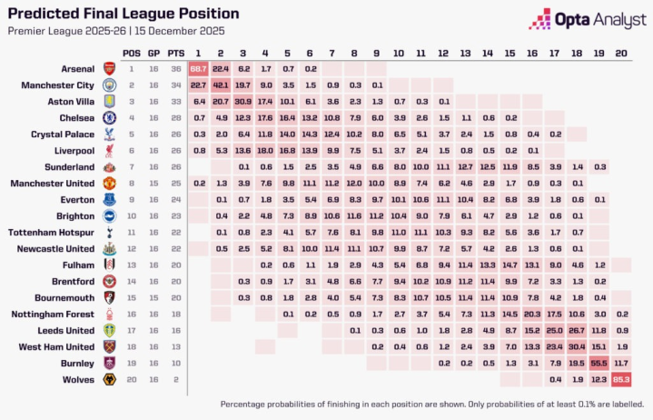 英超从来不缺戏剧性,但当赛季进行到第 16 轮,一些趋势已经开始变得清晰。争冠的、冲欧战的、为保级而战的球队,正在悄然分道扬镳。